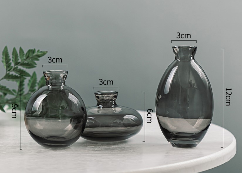 3 pçs clássico criativo mini vaso de vidro de qualidade superior transparente casa deco sala estar reagente garrafas vaso de flores por atacado azul
