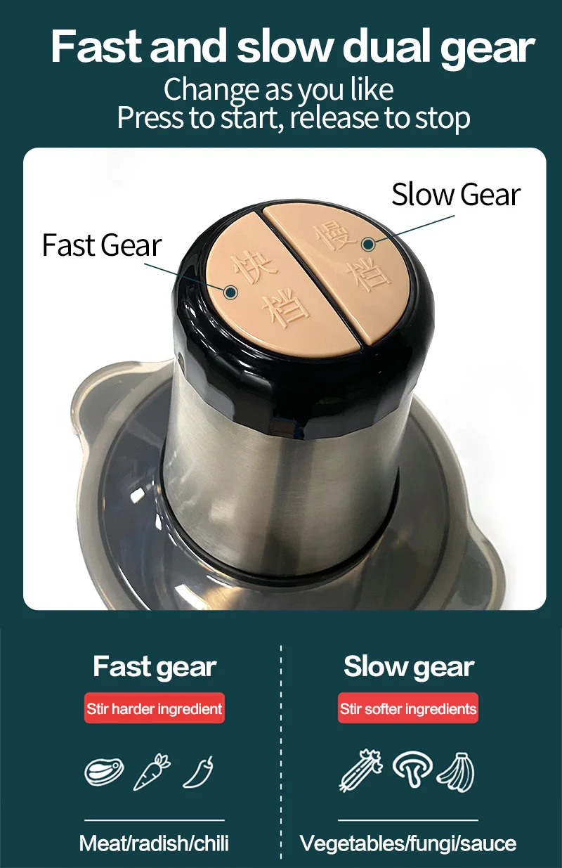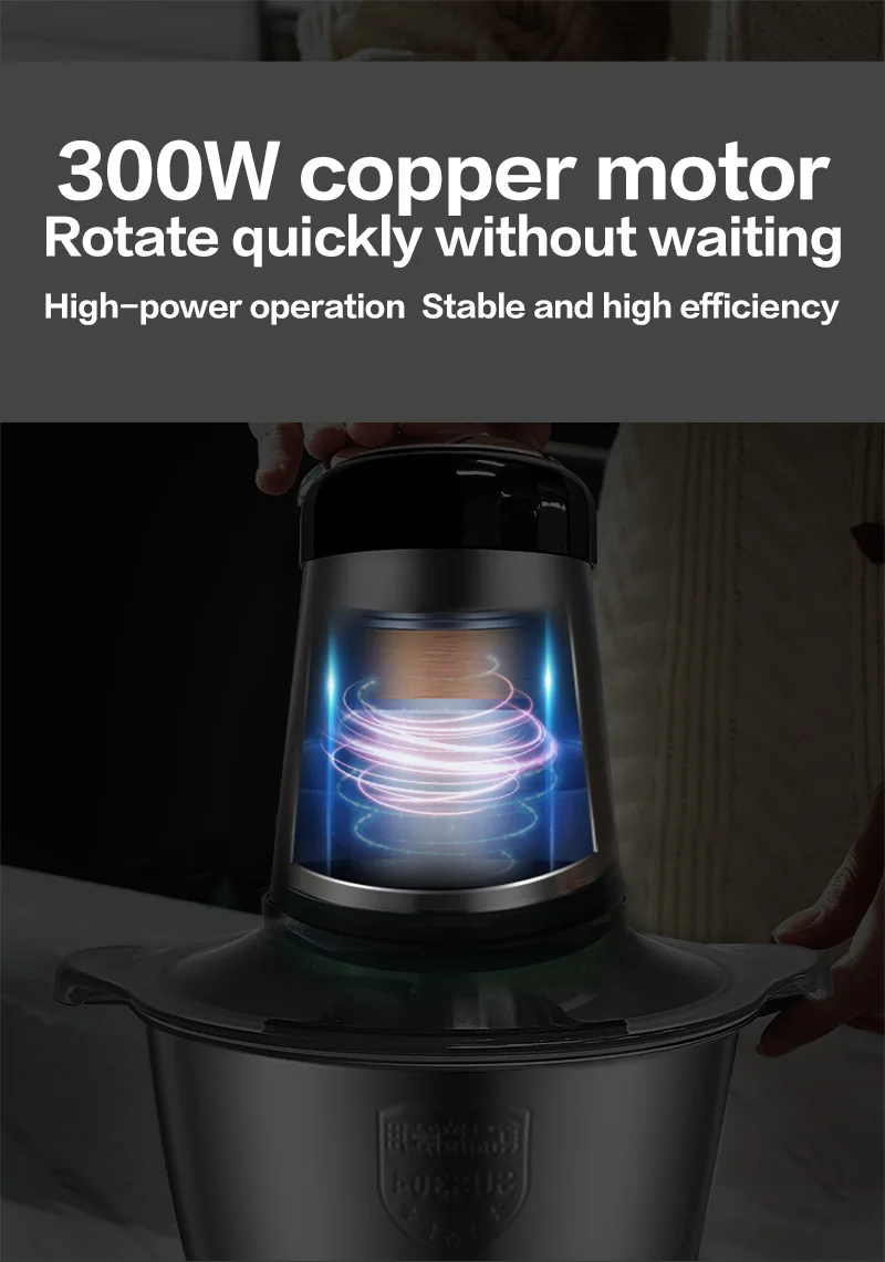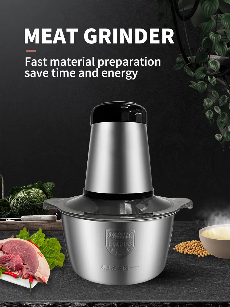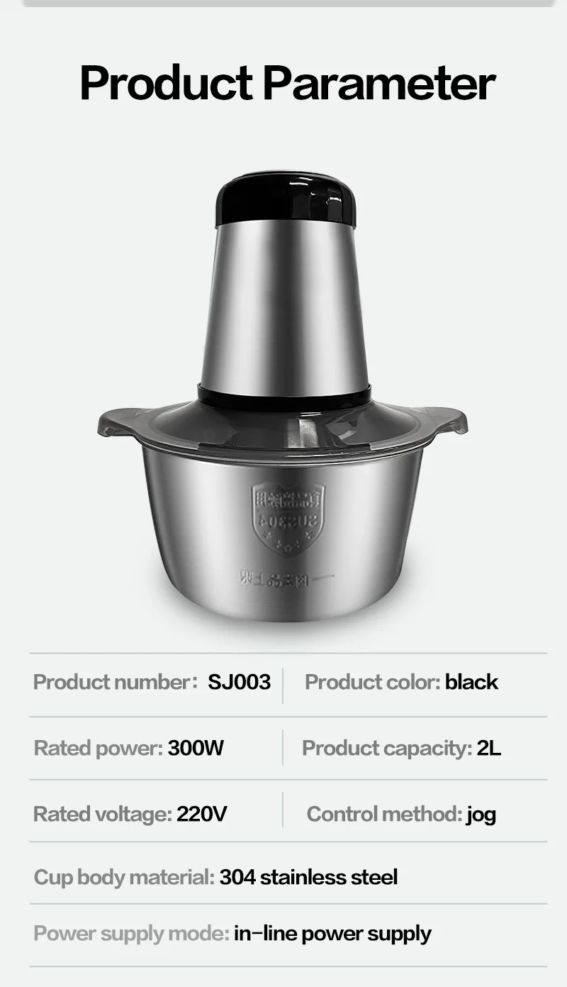 2L 300W alta e baixa 2 velocidade aço inoxidável chopper moedor de carne doméstico moedor de carne