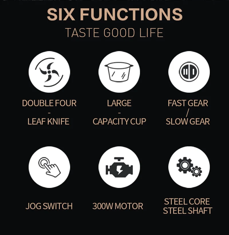 4. Duas opções da velocidade, alto/baixo, apropriado para uma variedade de ingredientes diferentes.